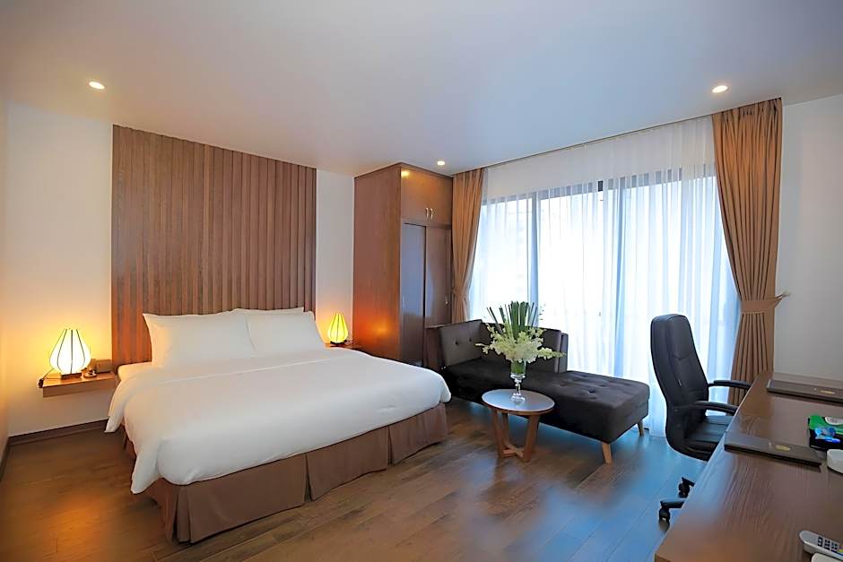 At , convenience meets comfort with a range of room types to suit every traveler's needs. From the cozy Superior rooms to the spacious Deluxe accommodations, each room is thoughtfully designed to provide a relaxing retreat after a day of exploration in Hanoi. Sink into a plush king-sized bed or opt for the convenience of two beds in the Premier room, ensuring a restful night's sleep for you and your loved ones. With modern amenities such as air conditioning, free toiletries, and a private bathroom, every room promises a comfortable stay for guests seeking a home away from home.